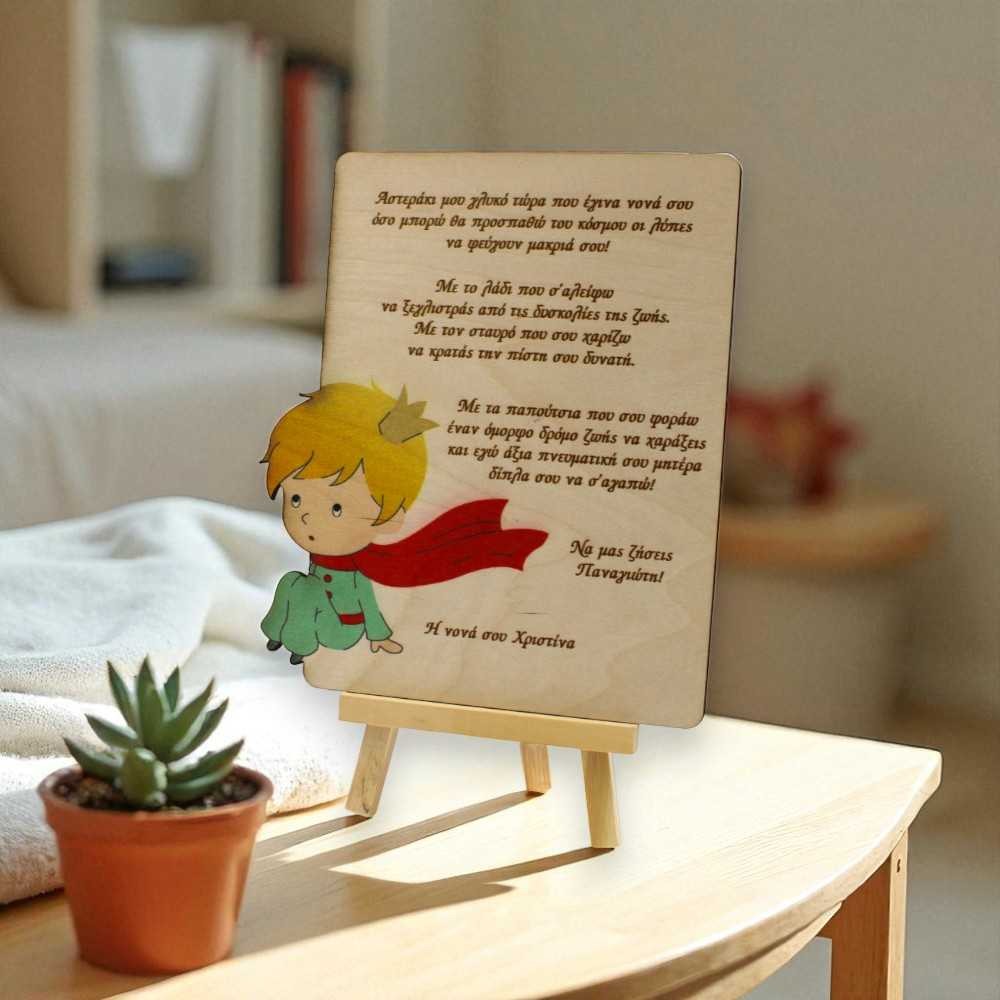 Πλακέτα Μικρός Πρίγκιπας με Αφιέρωση | Αξεσουάρ Βάφτισης | Woodncraft