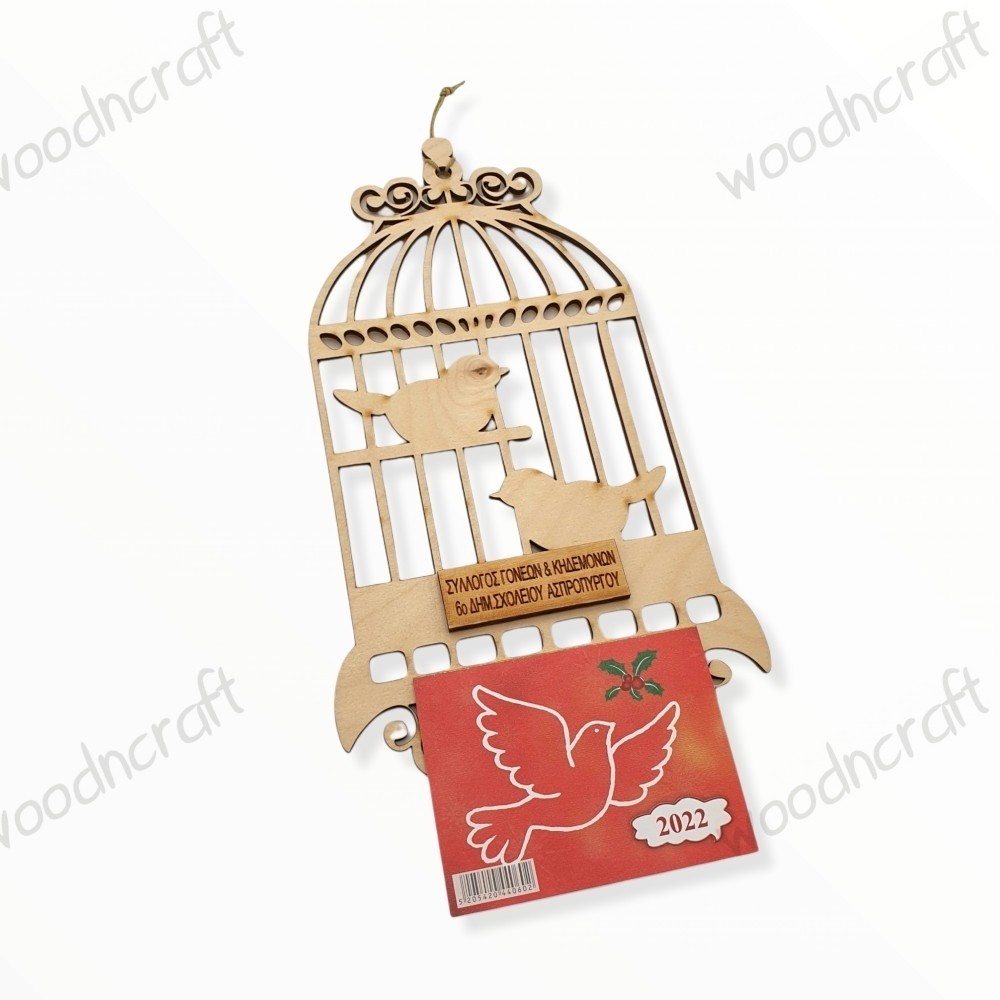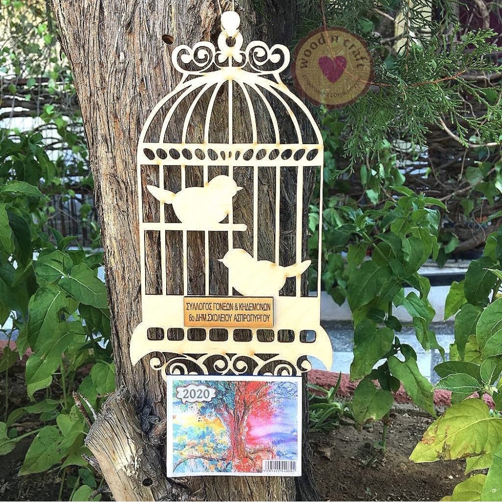 Ξύλινο ημερολόγιο - Κλουβί με πουλάκια