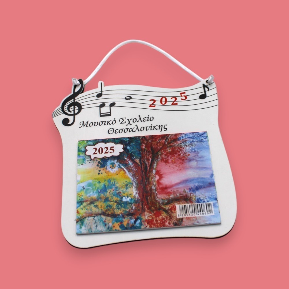 Για τους λάτρεις της μουσικής και της κομψότητας, το εργαστήριο Woodncraft παρουσιάζει ένα μοναδικό ξύλινο ημερολόγιο καδράκι. Στο πάνω μέρος, ένα λεπτομερώς χαραγμένο πεντάγραμμο κοσμείται από μουσικές νότες που συνθέτουν τη χρονολογία 2025, δημιουργώντας μια αρμονική αισθητική που θα εντυπωσιάσει.