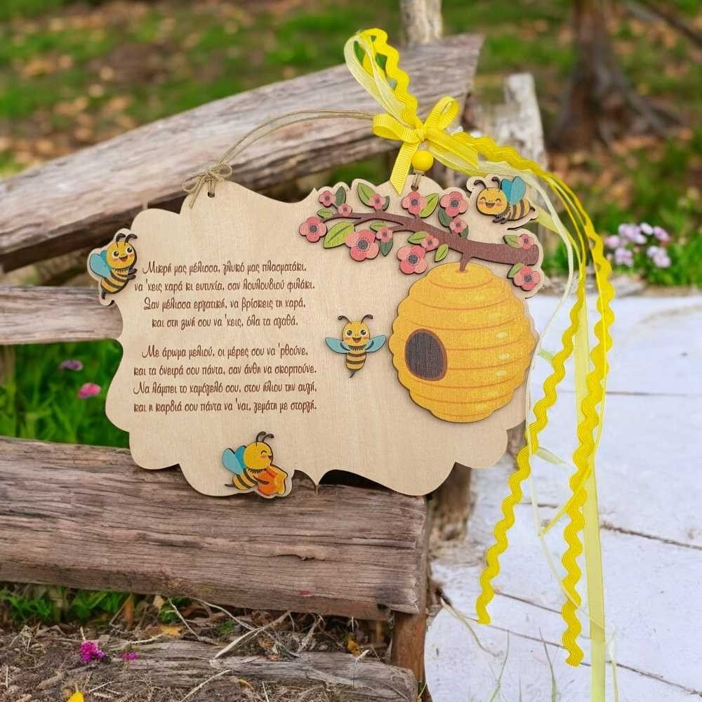 Ξύλινο καδράκι φυλαχτό - Μικρή μας μέλισσα