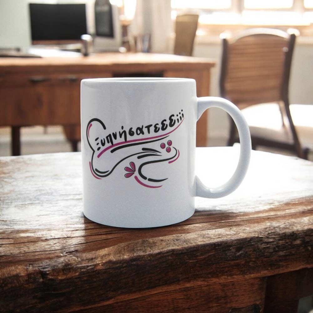 Ανακαλύψτε την πρωτότυπη πορσελάνινη κούπα τυπωμένη με ατάκες από τον αγαπημένο ελληνικό κινηματογράφο. Στη μία πλευρά, θα βρείτε τη φράση "Σας μερσώ μαντάμ! Ορεντουβάρ!", ενώ στην άλλη πλευρά αναγράφεται το χιουμοριστικό "Ξυπνήσατεεε;;;".