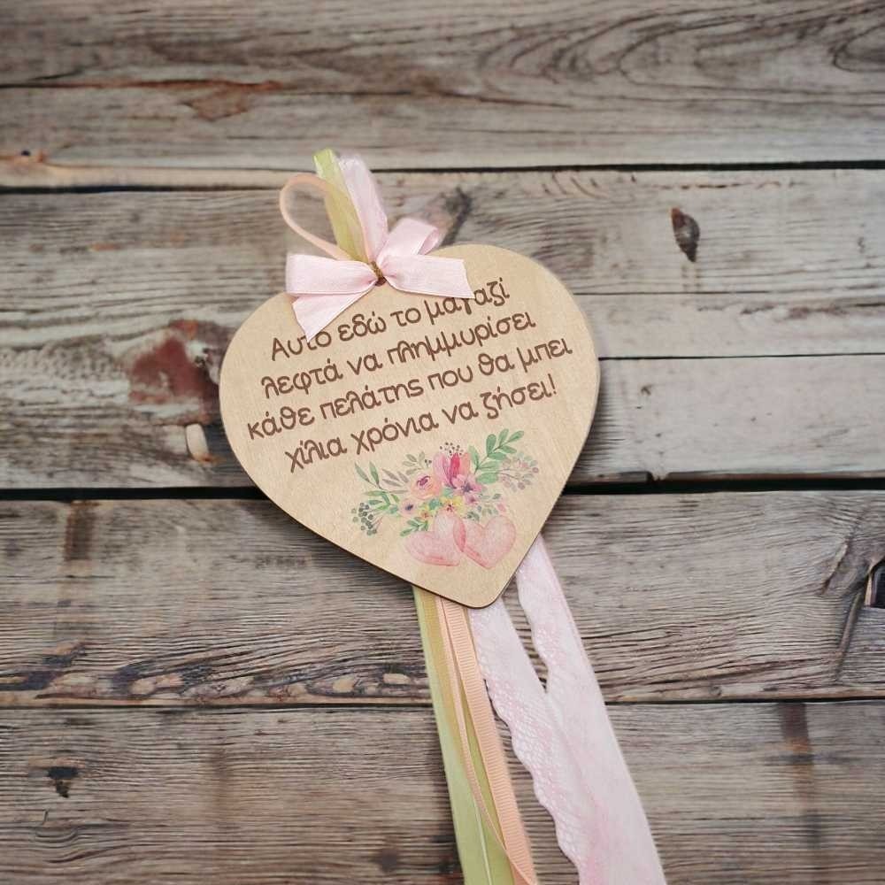 Μεταφέροντας τη θερμότητα και την αγάπη του χειροποίητου, η Ξύλινη Διακοσμητική Καρδιά "Αυτό Εδώ το Μαγαζί" αποτελεί μια γλυκιά και μοναδική προσθήκη σε κάθε χώρο.
