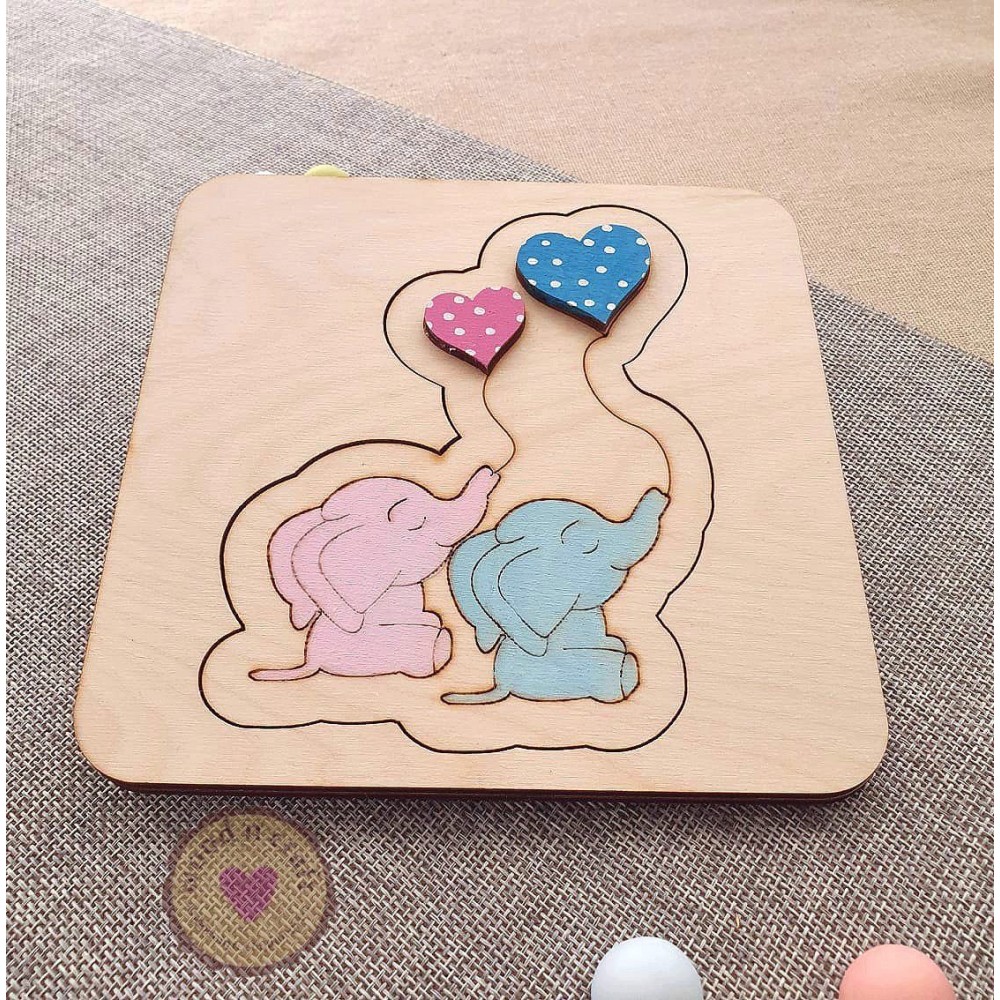 Προσκλητήριο παζλ - Δίδυμα ελεφαντάκια
