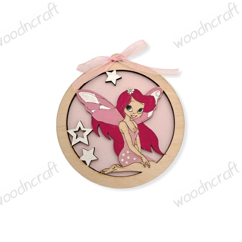 Μοναδικό ξύλινο προσκλητήριο βάπτισης με θέμα την Νεράιδα. Στην μπροστά μεριά υπάρχει προσαρμοσμένη η αγαπημένη μας ηρωίδα ενώ στην πίσω μεριά υπάρχει χαραγμένο το κειμενάκι πρόσκλησης μαζί με τα στοιχεία της βάπτισης σας.