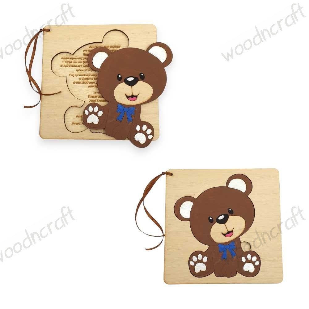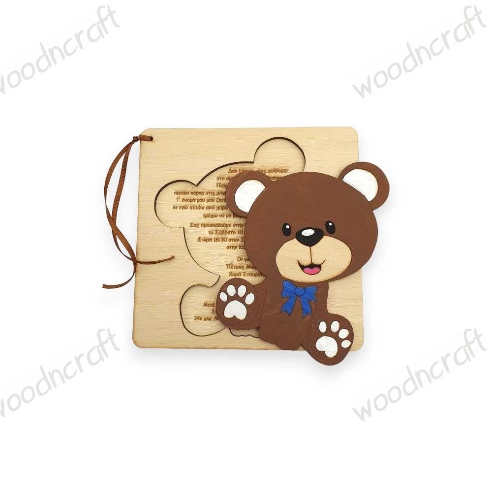 Ξύλινο προσκλητήριο παζλ - Αρκουδάκι