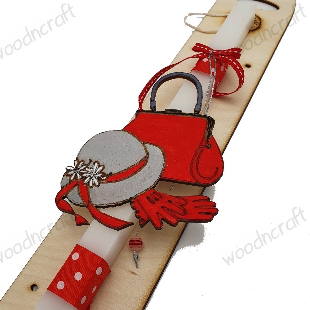 Χειροποίητη αρωματική λαμπάδα διακοσμημένη με κορδέλα και ξύλινο στοιχείο τσάντα, καπέλο και γάντια!