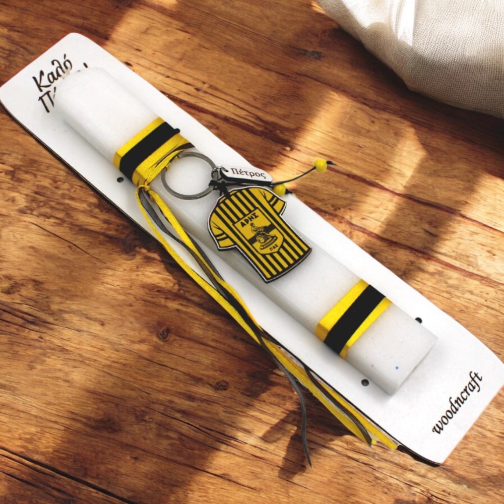 Με κίτρινες και μαύρες λεπτομέρειες, αυτή η λαμπάδα θα γίνει το απόλυτο δώρο για μικρούς και μεγάλους φιλάθλους.