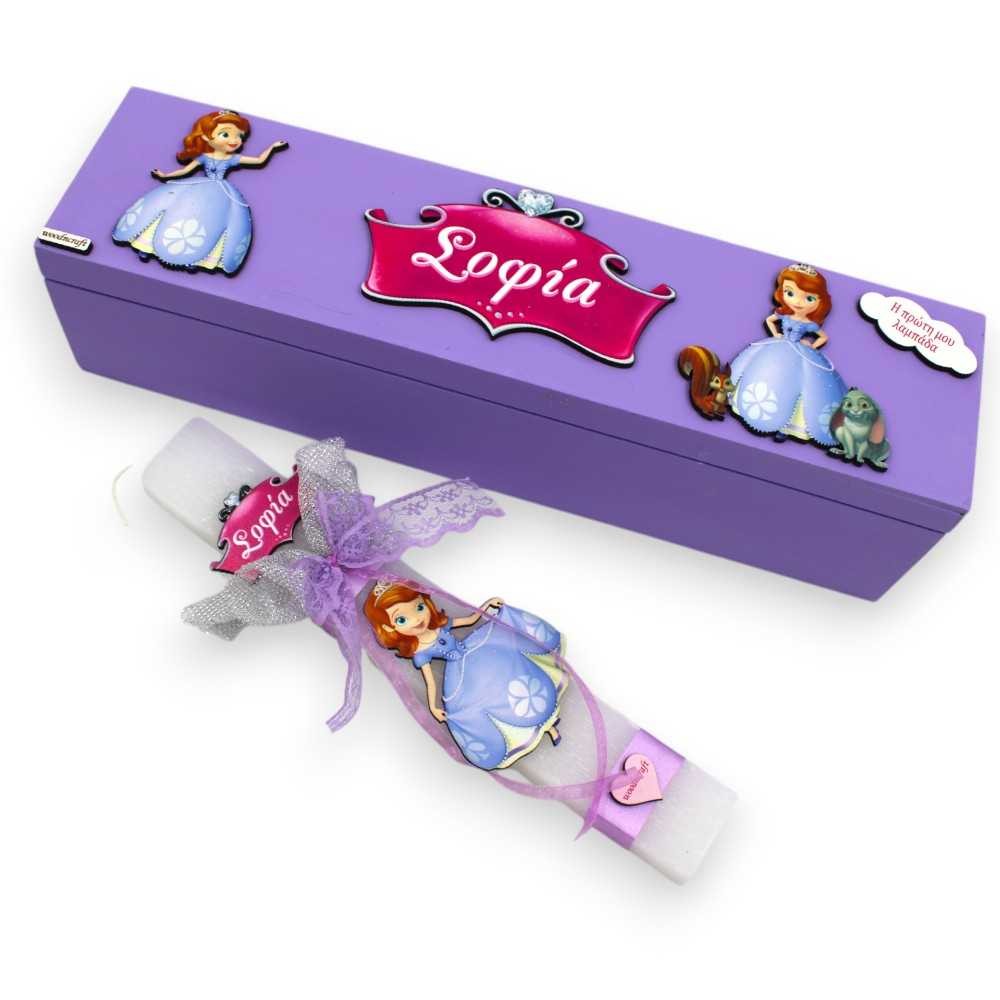 Συνοδεύεται από ένα εντυπωσιακό κόκκινο ξύλινο κουτί, διακοσμημένο με τρεις φιγούρες του Μίκυ και ένα χαριτωμένο συννεφάκι που γράφει η πρώτη μου λαμπάδα, καθιστώντας το ένα υπέροχο αναμνηστικό που θα κρατηθεί για πάντα.