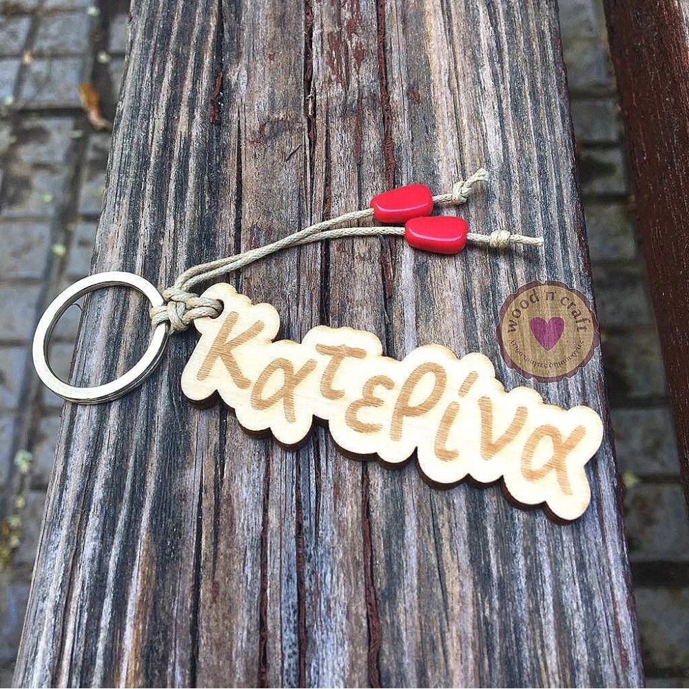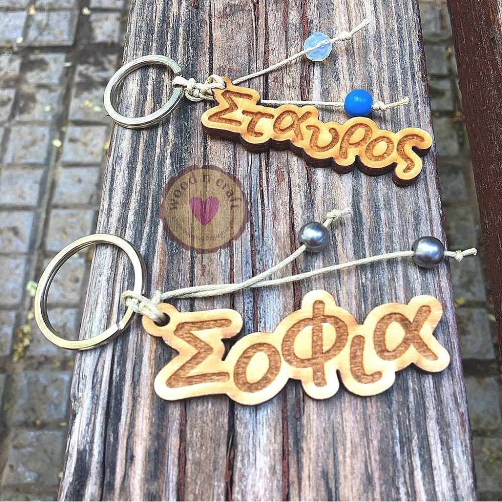 Ξύλινο χειροποίητο μπρελόκ στο σχήμα και με χάραξη του ονόματος σας, διακοσμημένο με χάντρες στο χρώμα της επιλογής σας!