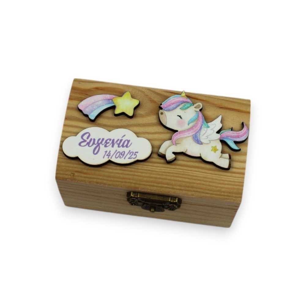 Αναδείξτε τη χαρά και την ευτυχία της βάφτισης του παιδιού σας με αυτή την ξεχωριστή χειροποίητη μπομπονιέρα από την Woodncraft. Αποτελείται από ένα ξύλινο κουτί μπαουλάκι, με μέγεθος 9 x 5.5 x 5 cm, που διακοσμείται με λεπτομερή ξύλινα στοιχεία - μια μέλισσα, ένα λουλουδάκι και το όνομα του παιδιού, στα χρώματα της επιλογής σας.