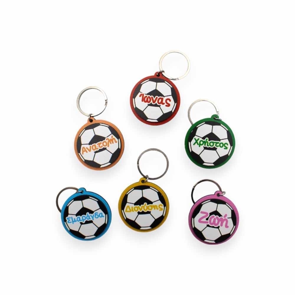 Ανακαλύψτε τα ξύλινα πολύχρωμα μπρελόκ σε σχέδιο μπάλας ποδοσφαίρου, τυπωμένα με τα ονόματα των παιδιών. Κατασκευασμένα με διπλό ξύλο για μια τρισδιάστατη αίσθηση, αυτά τα μπρελόκ αποτελούν το ιδανικό προσωποποιημένο δώρο για τους μικρούς μας φίλους.