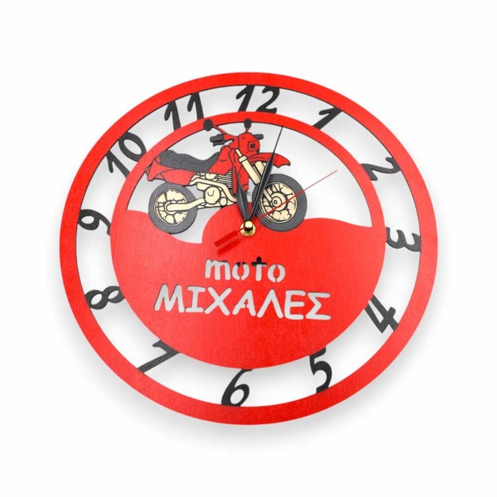 Μοναδικό ξύλινο χειροποίητο παιδικό ρολόι τοίχου διακοσμημένο με μια μηχανή! Ένα ιδιαίτερο ρολόι σε στρόγγυλο σχήμα που περιμετρικά του έχουν προσαρμοστεί οι αριθμοί της ώρας, στο κέντρο του η μηχανή και από κάτω το όνομα!