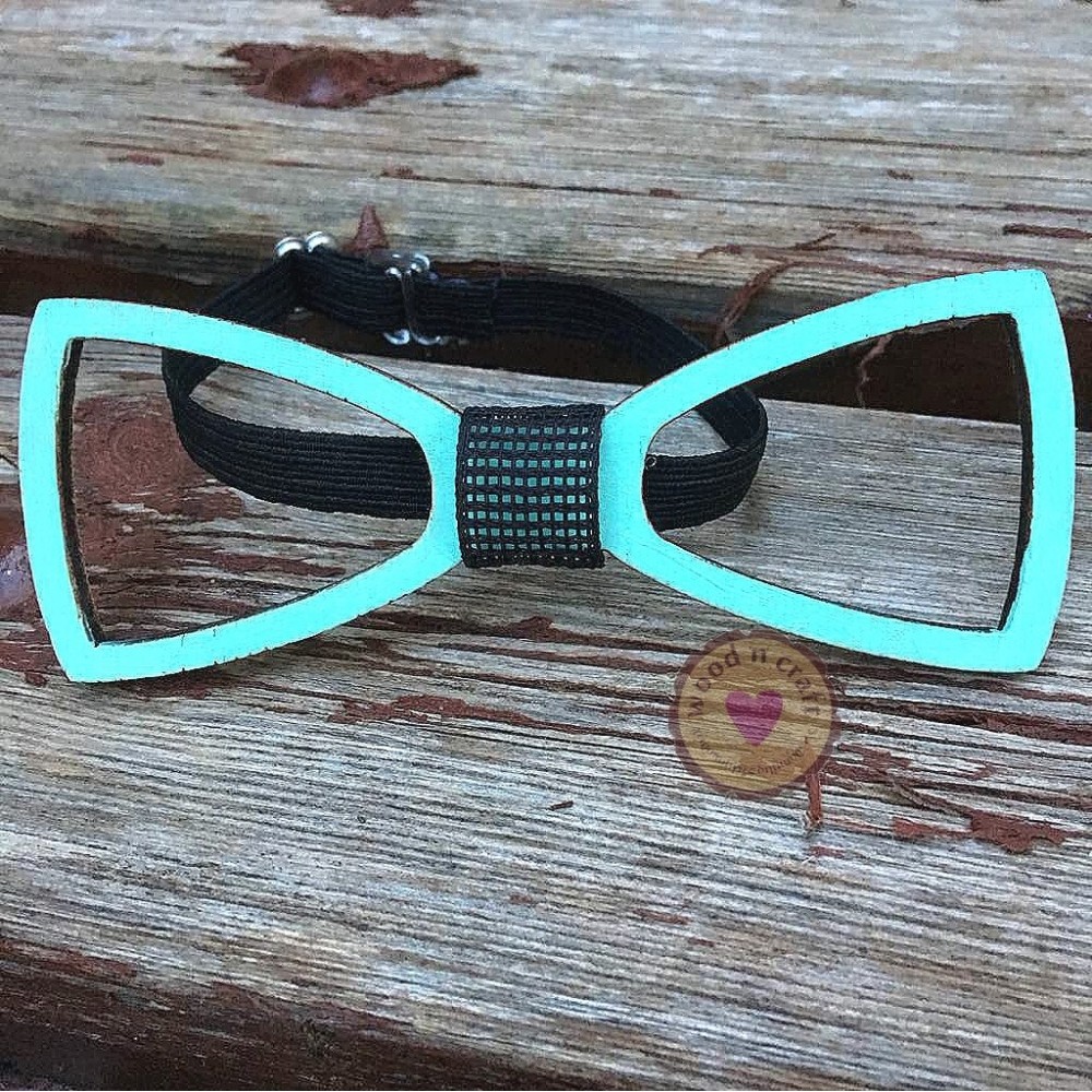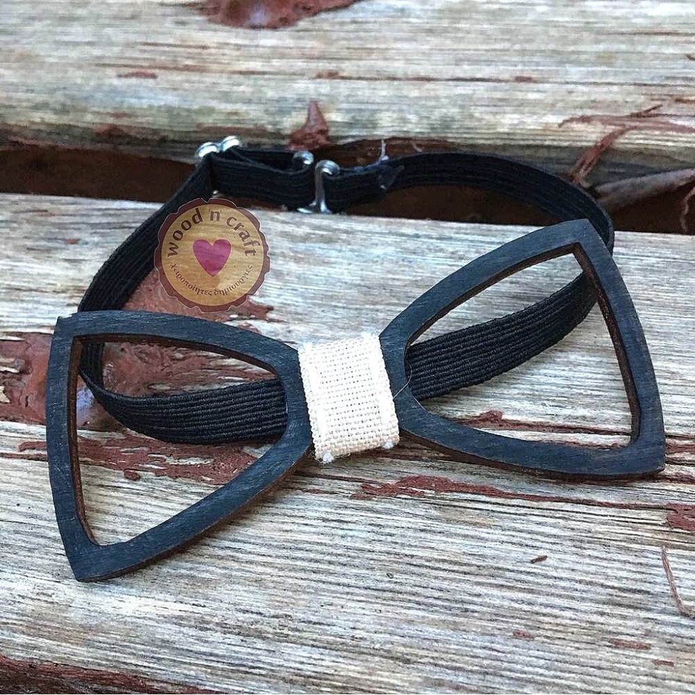 Ξύλινο χειροποίητο παπιγιόν περίγραμμα διακοσμημένο με κορδελάκι.