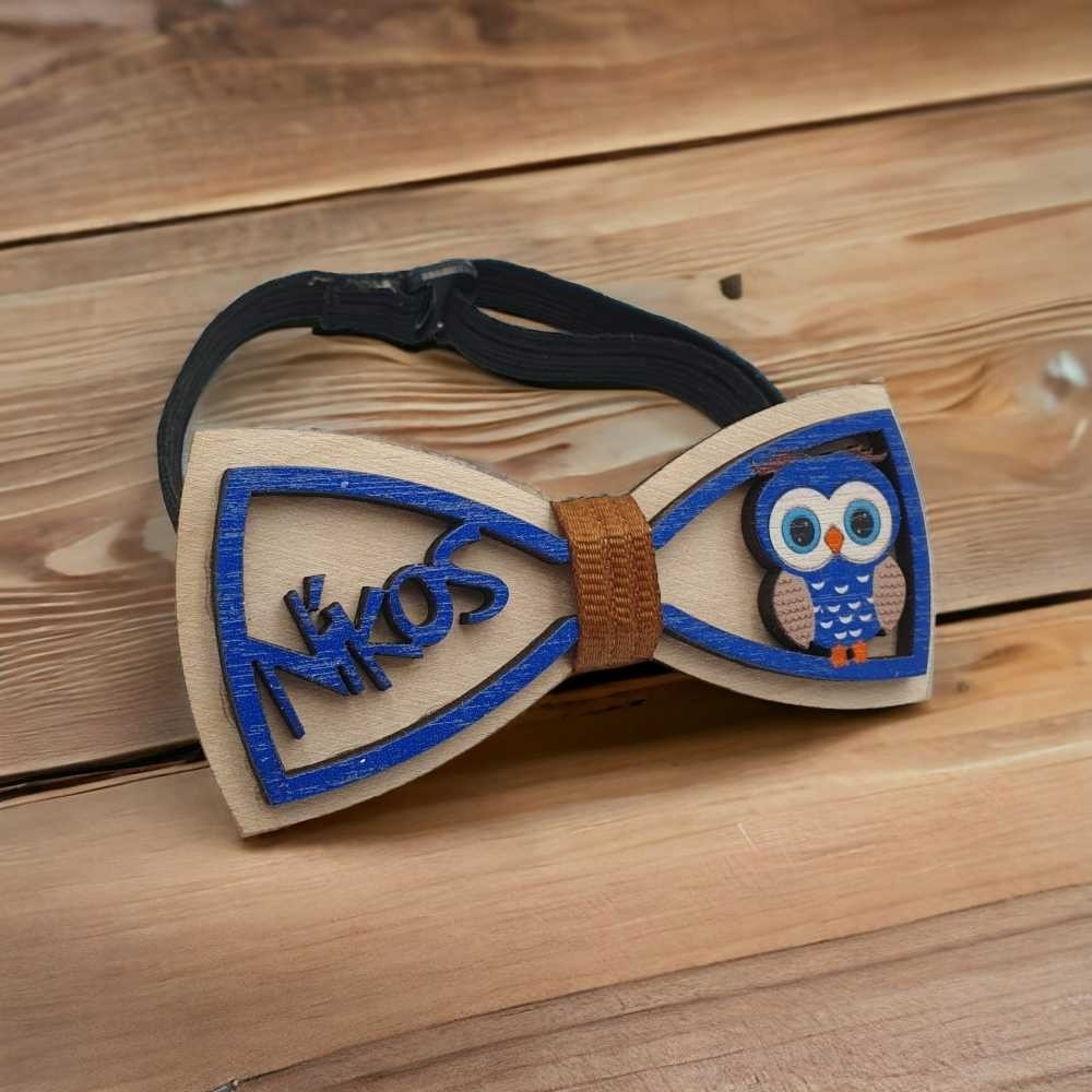 Ξύλινο παπιγιόν με όνομα - Κουκουβάγια