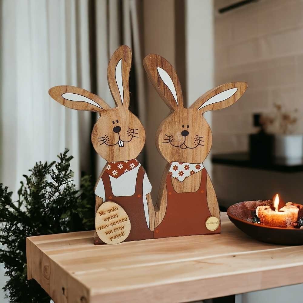 .Θέλετε να προσφέρετε ένα ξεχωριστό δώρο? Αυτό το ζευγάρι ξύλινα λαγουδάκια με την εκπληκτική εκτύπωση UV είναι η τέλεια επιλογή . Το ξύλινο αυγό στο πλάι προσφέρει την δυνατότητα για μια ξεχωριστή αφιέρωση , καθιστώντας το ένα μοναδικό δώρο για τους αγαπημένους σας.