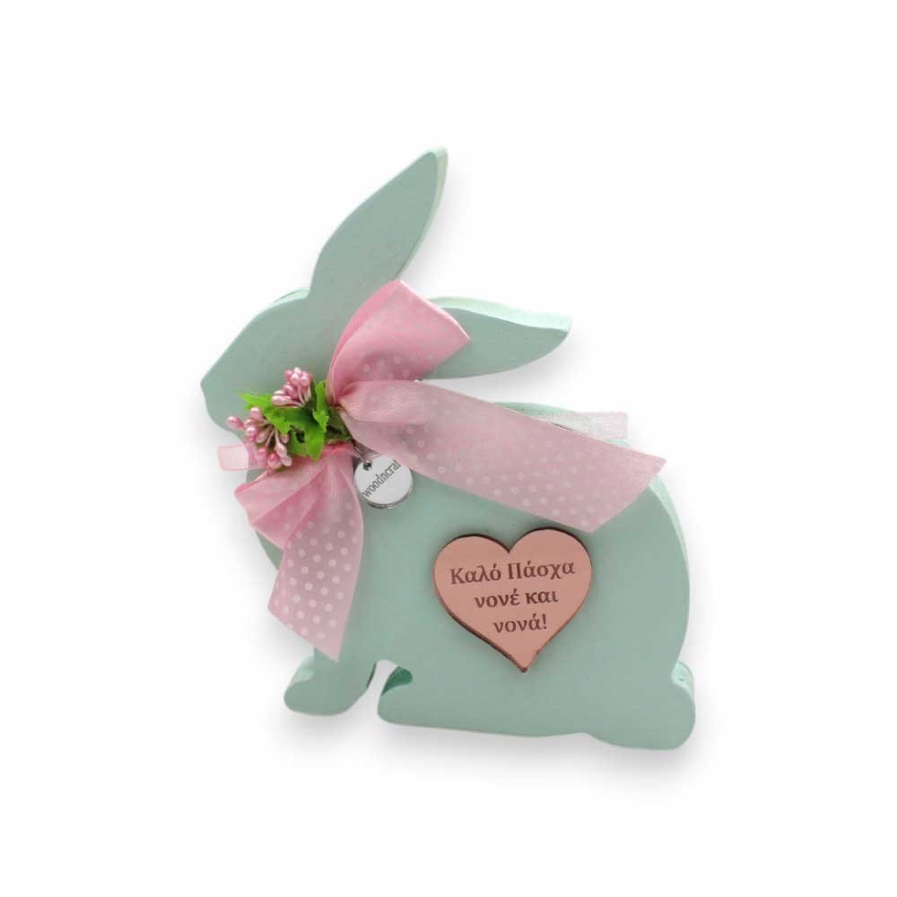 - Χειροποίητο ξύλινο κουνελάκι, πάχους 2 εκ. και ύψους 15 εκ., βαμμένο στο χέρι με παστέλ αποχρώσεις.