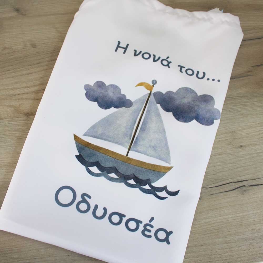 Μοναδική unisex προσωποποιημένη ποδιά βάφτισης σε θέμα καραβάκι! Μπορούν να μπουν ονόματα ή κάποια αφιέρωση της επιλογής σας. Ιδανική επιλογή για όλες τις καλοκαιρινές βαφτίσεις.
