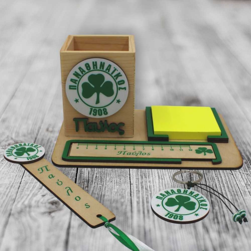 Ξύλινα σχολικά δώρα | Μαθητικό σετ γραφείου Παναθηναϊκός | Woodncraft