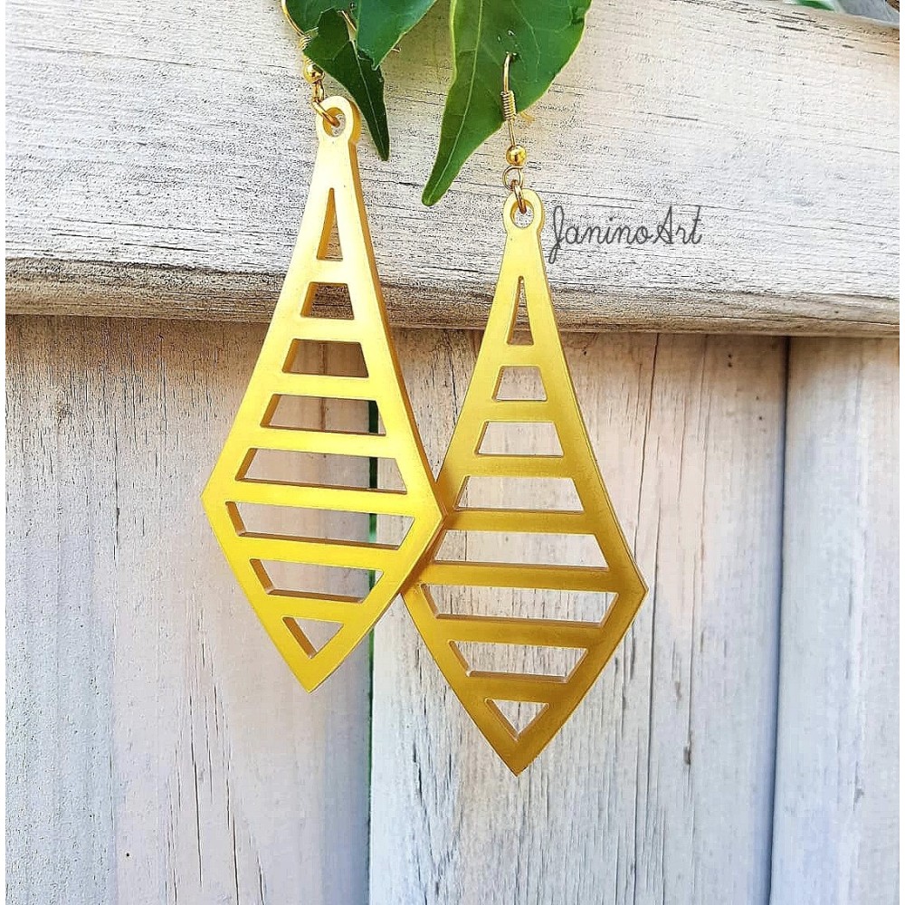 Πρωτότυπα χειροποίητα κρεμαστά σκουλαρίκια σε χρυσό plexiglass.